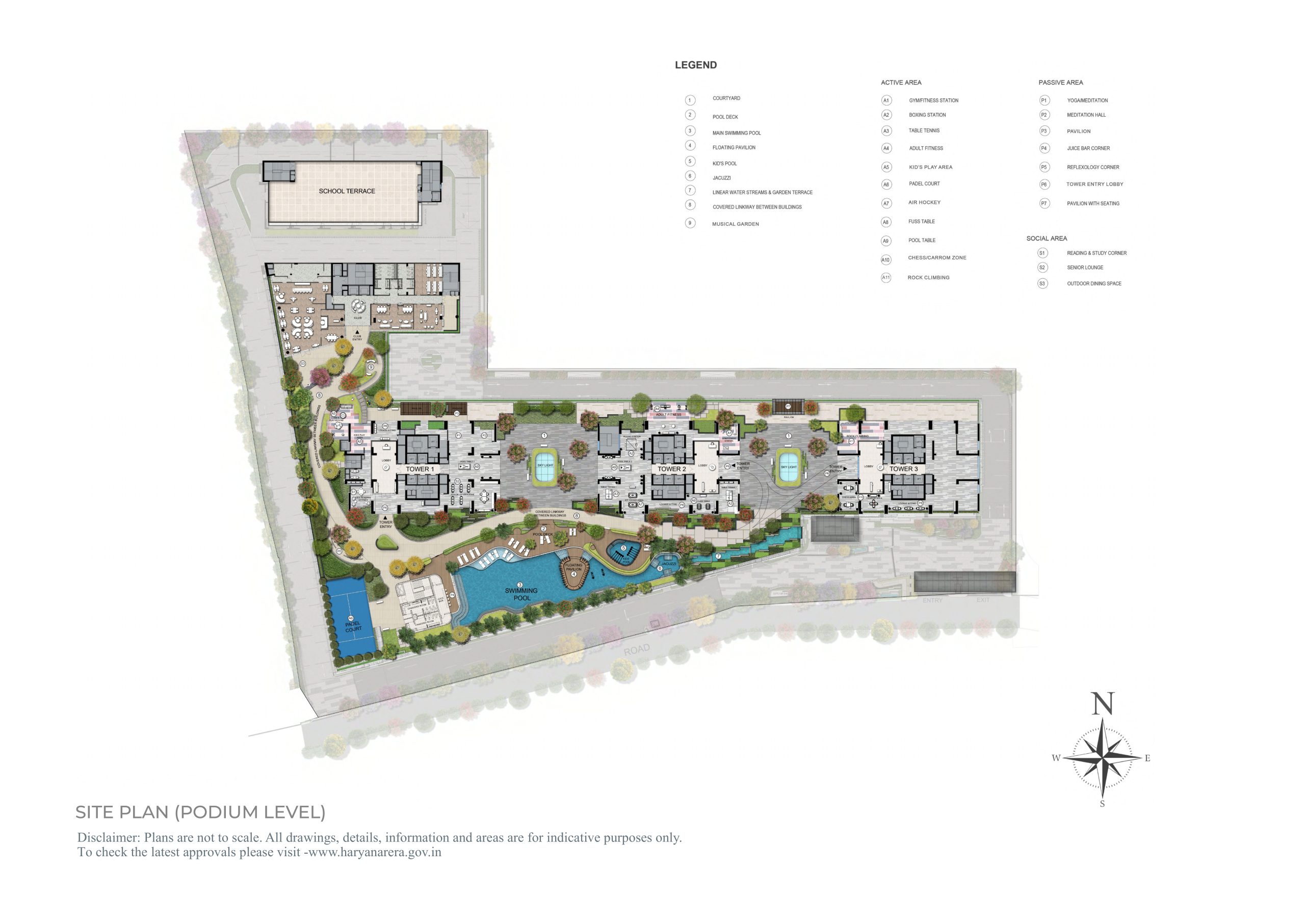 *The area for amenities shall mean to include (i) the area earmarked for club and primary school and the applicable FAR allowed on such sites by DTCP as per the sanctioned drawings; and (ii) the landscape area which shall mean to include the soft and hard landscape area forming part of the project on the ground and podium level (if any).